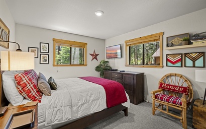 Nestled in the Northwoods neighborhood at Camp Howdy, you can enjoy easy access to alpine activities in the winter, hiking, biking, swimming, and more in the summer. This upscale neighborhood provides easy access to Tahoe Donner Ski Resort, Tahoe Donner Golf Course and the Tahoe Donner Association’s clubhouse, which features two swimming pools, three hot tubs, two saunas, tennis courts, a cardio room, and a weight room. There are nearby hiking and biking trails and guests also get access to the private beach at the east end of Donner Lake!