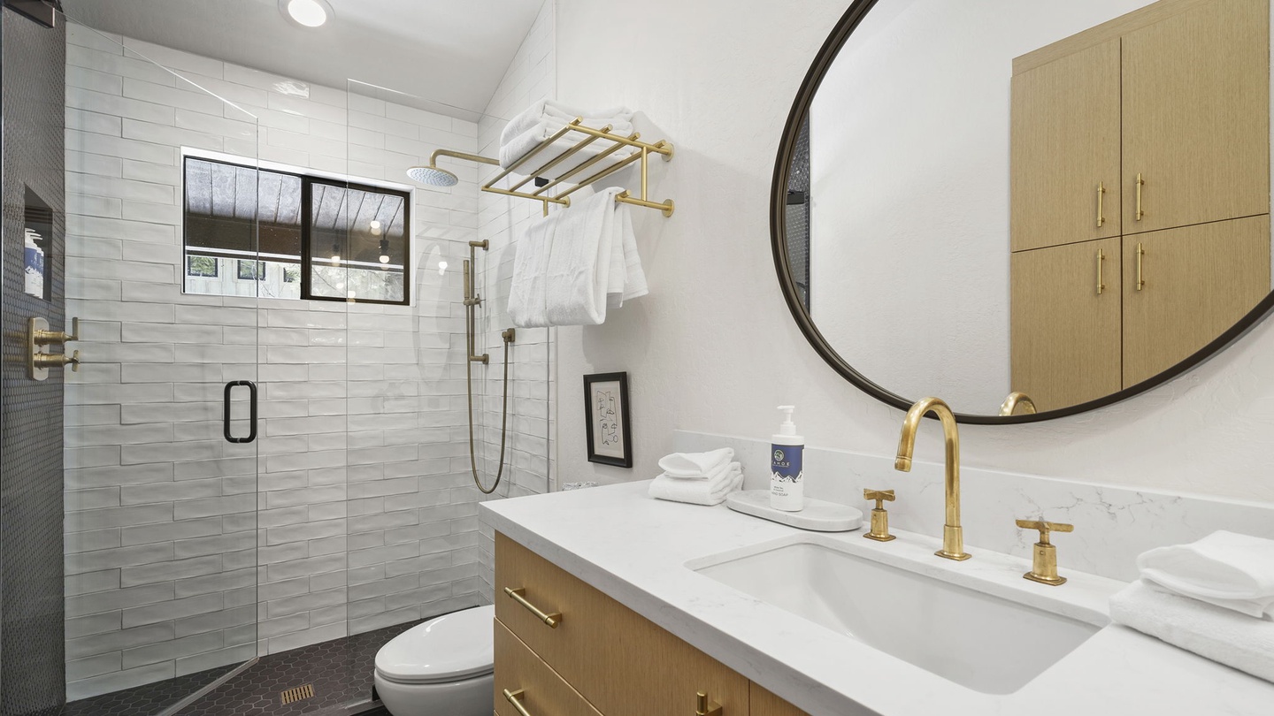 A second full bathroom is easily accessible from both the twin bedroom and main living area.