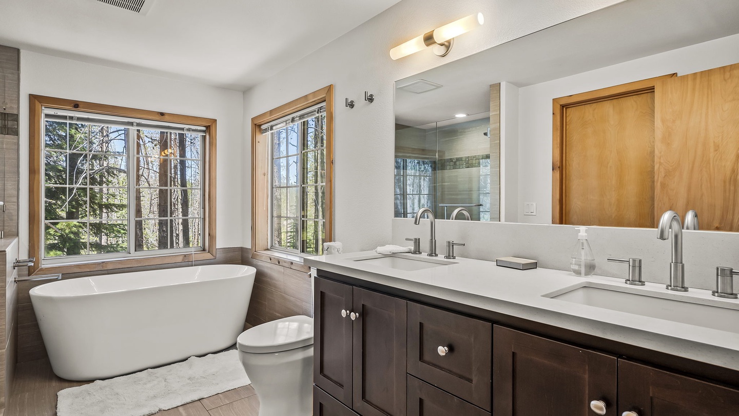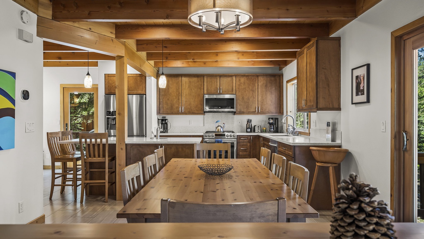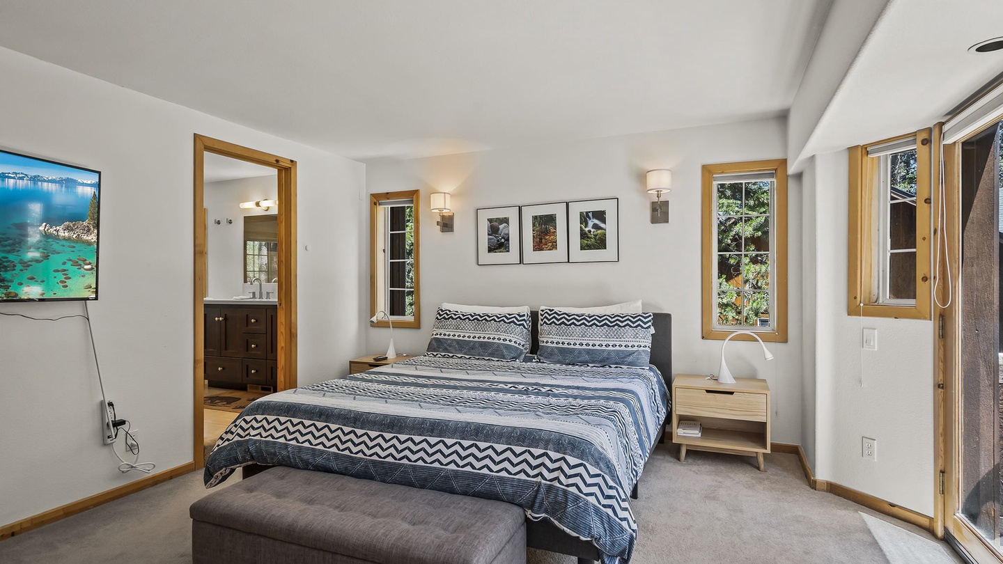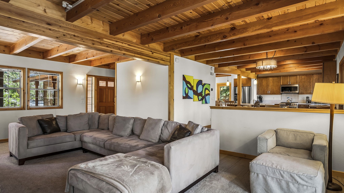 Our Tahoe Donner Mountain View Cabin is a charming 3 bedroom, 2.5 bathroom retreat nestled in the heart of the exclusive Tahoe Donner neighborhood. The natural textures throughout the home and updated modern rooms combine to create a warm and inviting atmosphere offering a luxurious and comfortable retreat in the Sierra Nevadas. Plus, Tahoe Donner Mountain View Cabin is close to all the incredible neighborhood amenities and recreation and is centrally located so you can easily explore everything Tahoe has to offer! Whether you want to golf, hike or ski, explore historic town centers or visit the stunning Lake Tahoe, this beautiful cabin provides the ideal escape for families and friends looking for a relaxing and unforgettable vacation.