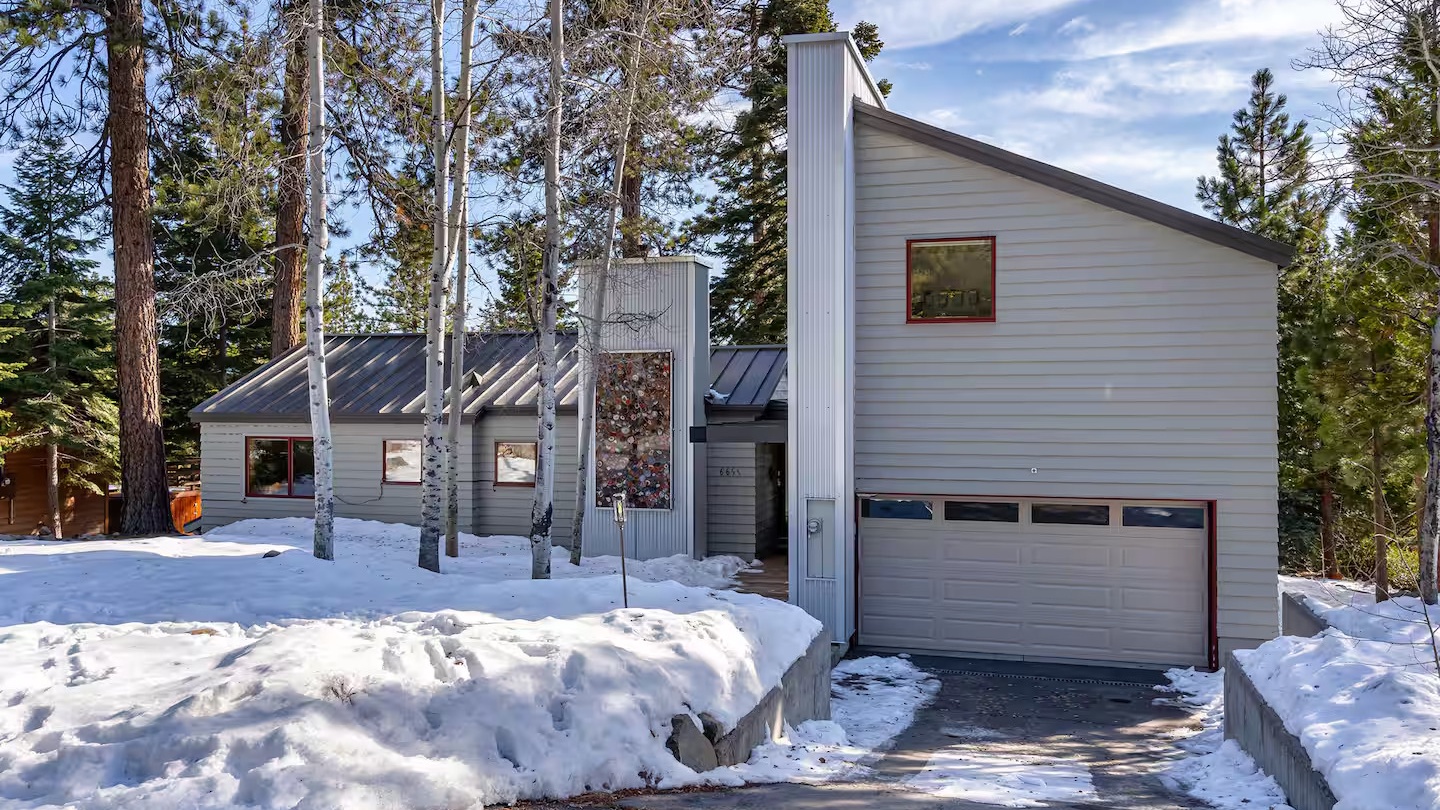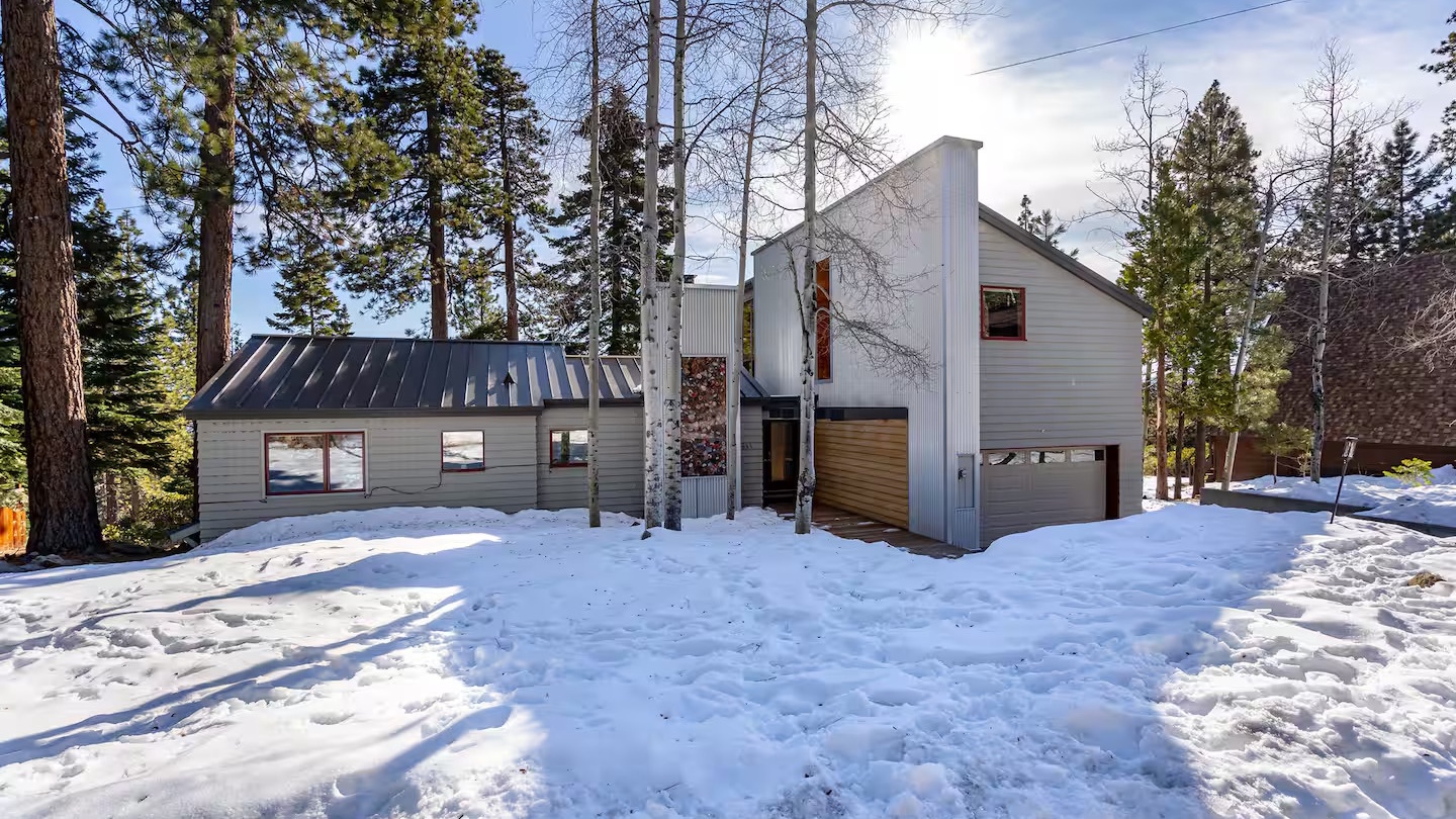 As you pull up to Tahoe Skyline, you're greeted by a sleek and modern architectural design that blends seamlessly with the natural surroundings. A fresh layer of snow adds to the charm during the winter months, while the home’s clean lines and warm wood accents make it a true standout.