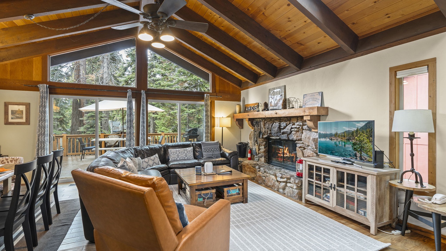 Stone Fireplace and Vaulted Ceilings