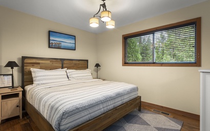 The three bedrooms offer restful comfort, including a king suite with forest views, soft linens, and modern mountain décor. Every detail has been designed for connection, comfort, and relaxation.